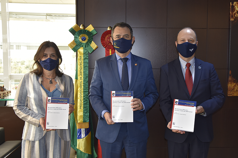 O procurador-geral de Justiça Militar, Antônio Pereira Duarte, acompanhado pelo presidente da Associação Nacional do Ministério Público (ANMPM), o subprocurador-geral de Justiça Militar Edmar Jorge de Almeida, e pelo secretário-geral do Conselho Nacional do Ministéri. . .3 de agosto de 2021