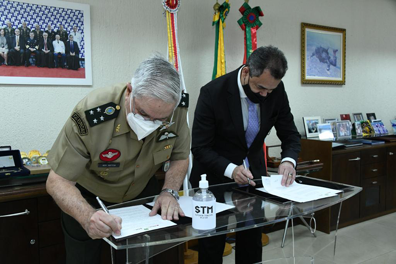 O procurador-geral de Justiça Militar, Antônio Pereira Duarte, e o presidente do Superior Tribunal Militar, Luis Carlos Gomes Mattos, celebraram, nesta tarde (9), Protocolo de Intenções para compartilhar as instalações do edifício-sede da Procuradoria de Justiça Milit. . .9 de agosto de 2021