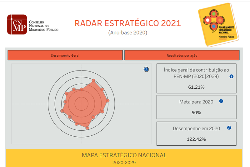 A Comissão de Planejamento Estratégico (CPE/CNMP) divulgou os resultados do RADAR ESTRATÉGICO 2021 (ano-base 2020), instrumento de mensuração do Planejamento Estratégico Nacional do Ministério Público (PEN-MP). A publicação inaugura o ciclo do novo PEN-MP 2020-202. . .8 de julho de 2021