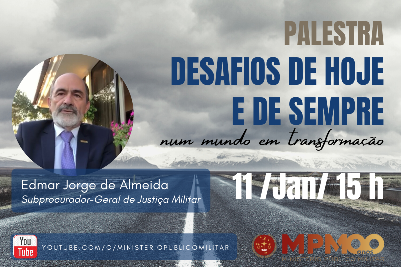 Abrindo o calendário de atividades do MPM em 2021, a Procuradoria-Geral de Justiça Militar promove na próxima segunda-feira (11), às 15 horas, a palestra Desafios de hoje e de sempre num mundo em transformação, com o subprocurador-geral de Justiça Militar Edmar Jorge d. . .7 de janeiro de 2021