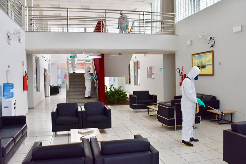 Na segunda-feira (18), foi realizada a desinfecção das dependências da sede da Procuradoria de Justiça Militar em Fortaleza. O serviço, realizado por militares da Capitania dos Portos do Ceará (CPCE), da Marinha do Brasil, iniciou-se à s 9h30 e foi concluÃdo ainda no p. . .20 de janeiro de 2021